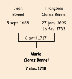 Marie Claraz Bonnel apparait dans la consigne du sel pour l'année 1727. |