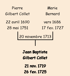 | Mère : Marie Bernard | Marraine : Marie Gilbert Collet (fille de Michel décédé) |