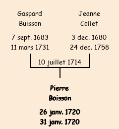 Père : Gaspard Boisson | Parrain : Pierre Boisson (fils de Jean Claude décédé) |