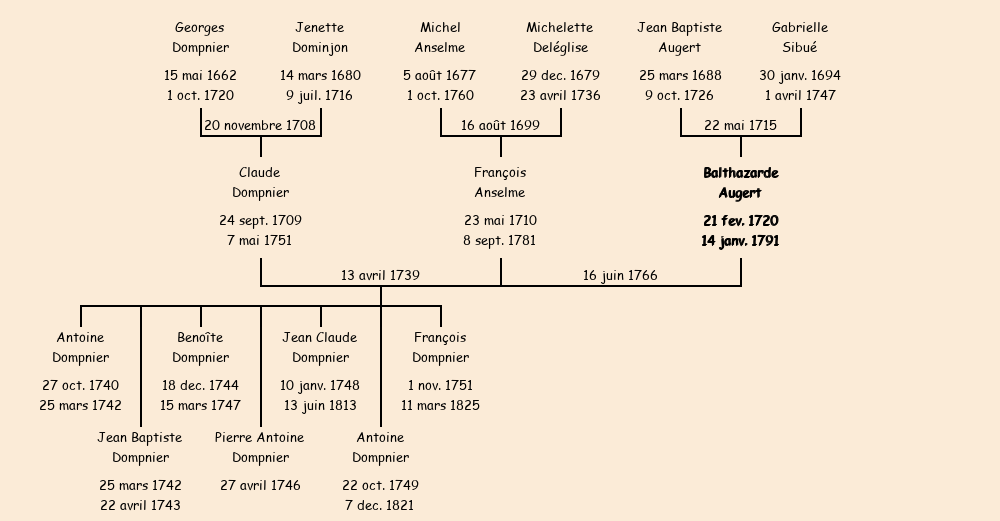 | Epouse : Balthazarde Augert (veuve de Claude Dompnier), fille de feu Jean Baptiste |