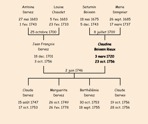 | Mère : Marie Dompnier | Marraine : Claudine Boisson Carles (veuve de Jean Claraz Bonnel) |