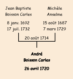 | André Boisson Carles apparait dans la consigne du sel pour l'année 1727. |