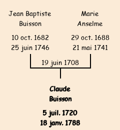 Père : Jean Baptiste Buisson | Parrain : Claude Anselme (fils de Pierre Antoine) |