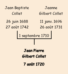 | Jean Pierre Gilbert Collet apparait dans la consigne des mâles de 1726. |