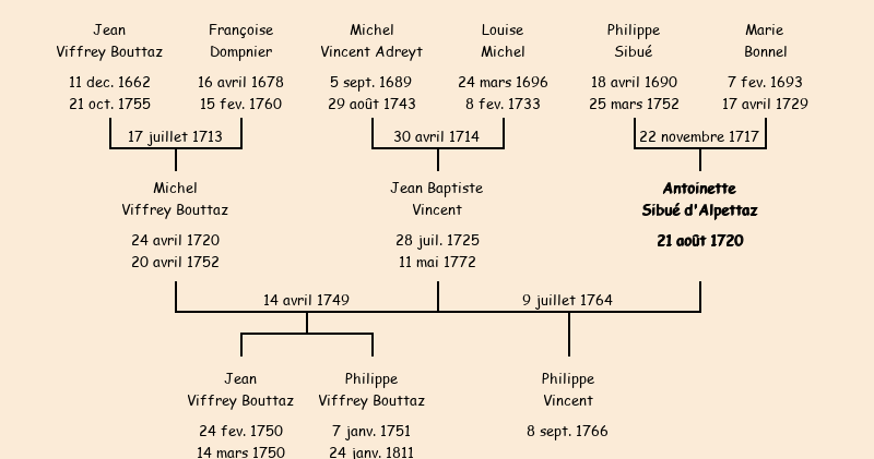 | Père : Philippe Sibué d'Alpettaz | Parrain : Jean Claraz Bonnel (fils de Dominique) |