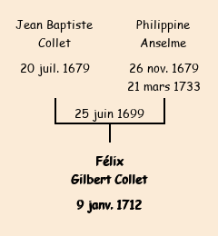 Félix Gilbert Collet apparait dans la consigne des mâles de 1713. |