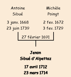 Père : Antoine Sibué d'Alpettaz | Parrain : André Cuchet (fils d'Aynard) |