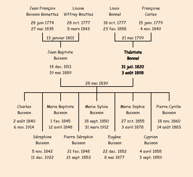 Mère : Françoise Buisson Carles | Marraine : Victoire Claraz Bonnel |