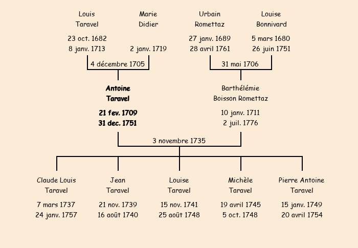Antoine Taravel apparait dans le recensement de la population de 1716. |