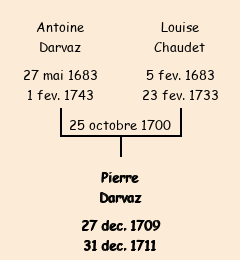 Père : Antoine Darvaz | Parrain : Pierre Claraz Bonnel (fils de Jean François) |