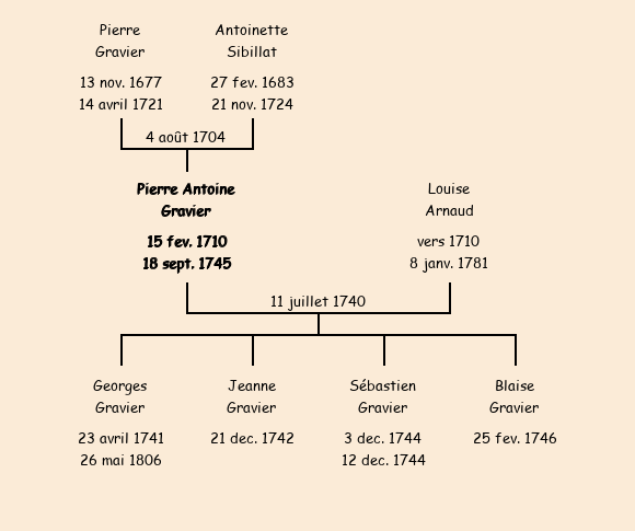 | Pierre Antoine Gravier apparait dans le recensement de la population de 1716. |