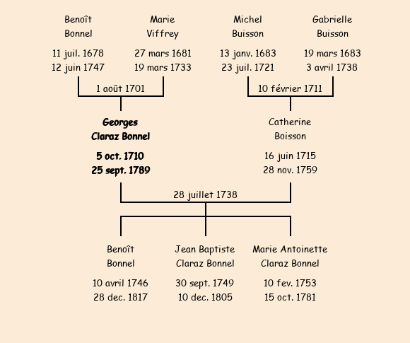 Père : Benoît Claraz Bonnel | Parrain : Georges Viffrey Bullière (fils de Jean) |