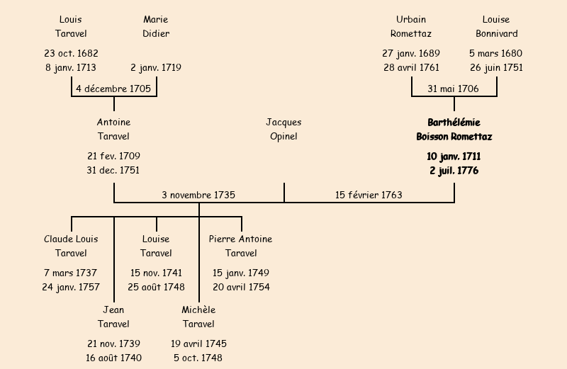 Mère : Louise Bonnivard | Marraine : Barthélémie Boisson Romettaz (fille de Claude) |