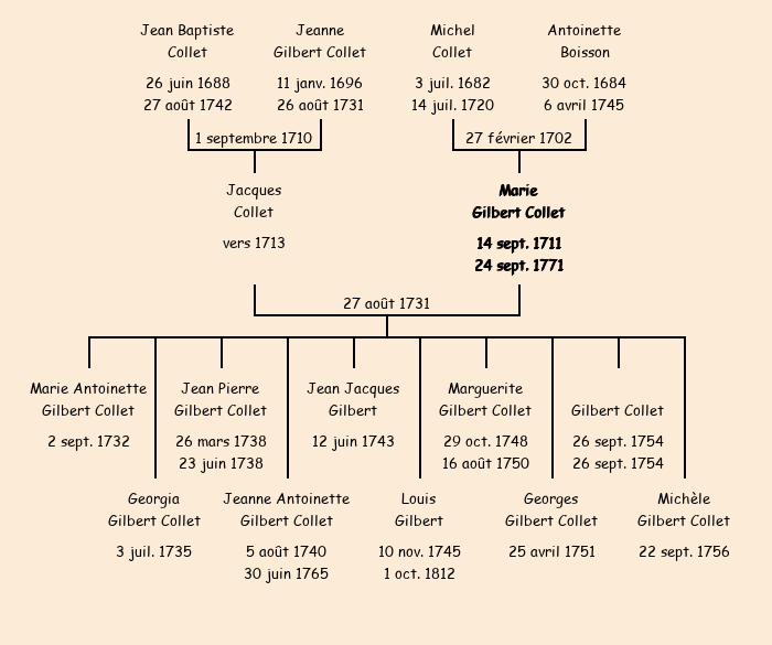 Epoux : Jacques Gilbert Collet, fils de Jean Baptiste |