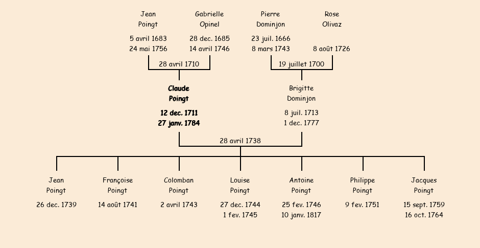 | Père : Jean Poingt | Parrain : Claude Poingt (fils d'Amédée, frère de la marraine) |