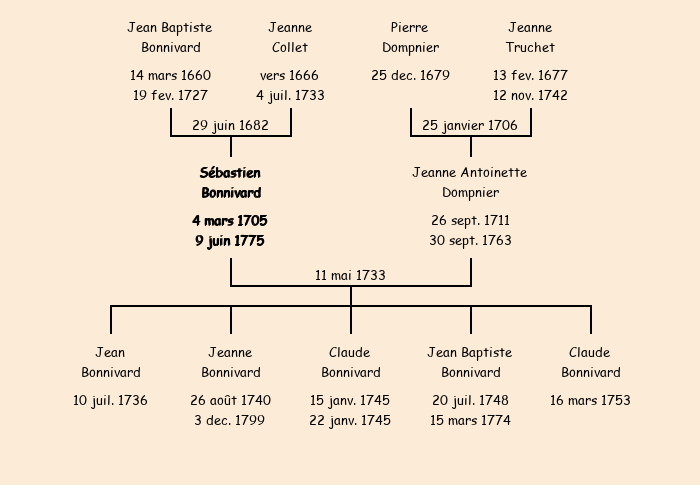 | Père : Jean Baptiste Bonnivard | Parrain : Sébastien Dompnier (fils de Gaspard) |