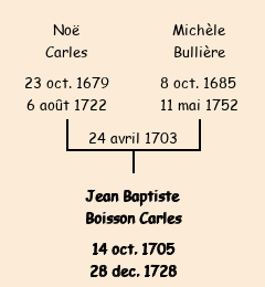 Jean Baptiste Boisson Carles apparait dans la consigne des mâles de 1713. |