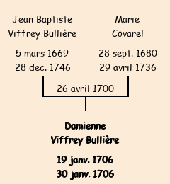 | Mère : Marie Covarel | Marraine : Damienne Viffrey Bullière (fille de Jean) |