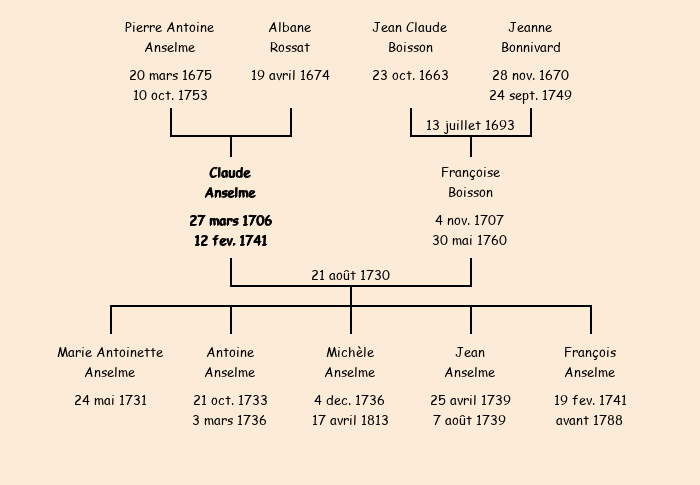 | Epoux : Claude Anselme, fils de Pierre Antoine (honorable) |