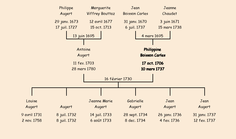 | Philippine Boisson Carles apparait dans le recensement de la population de 1716. |