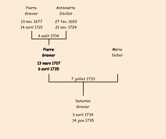 Pierre Gravier apparait dans le recensement de la population de 1716. |