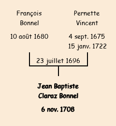Jean Baptiste Claraz Bonnel apparait dans la consigne des mâles de 1713. |