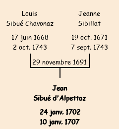 Père : Louis Sibué d'Alpettaz | Parrain : Jean Thorain |