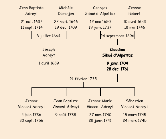 Claudine Sibué d'Alpettaz apparait dans la consigne du sel de 1720. |