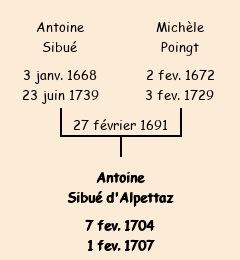 Père : Antoine Sibué d'Alpettaz | Parrain : Antoine Poingt (fils de Claude, décédé) |