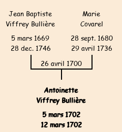 Père : Jean Baptiste Viffrey Bullière | Parrain : Jean Viffrey Bullière |