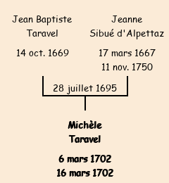 Mère : Jeanne Sibué d'Alpettaz | Marraine : Michèle Taravel (fille du parrain) |