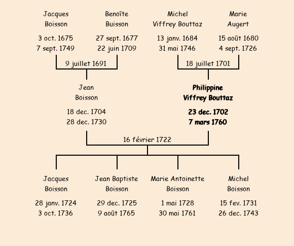 | Philippine Viffrey Bouttaz apparait dans la consigne des habitants de Fontcouverte pour l'année 1718. |