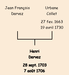 Mère : Urbaine Gilbert Collet | Marraine : Louise Chaudet (épouse d'Antoine Darves fils du dit Jean François) |