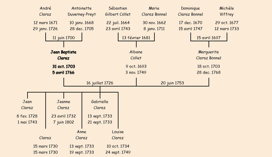 Jean Baptiste Claraz apparait dans le recensement de la population de 1716. |