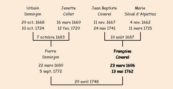 | Epouse : Françoise Covarel, fille de feu Jean Baptiste |