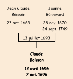 | Père : Claude Boisson | Parrain : Claude Taravel (fils de Pierre décédé) |