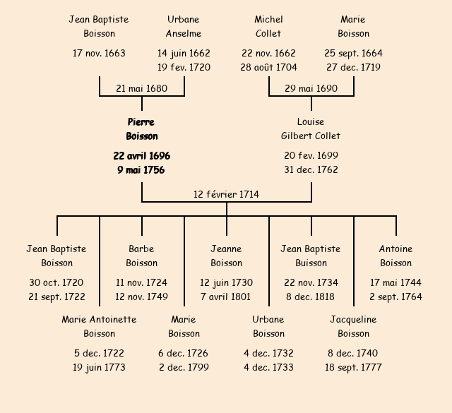 | Pierre Boisson apparait dans le recensement de la population de 1716. |