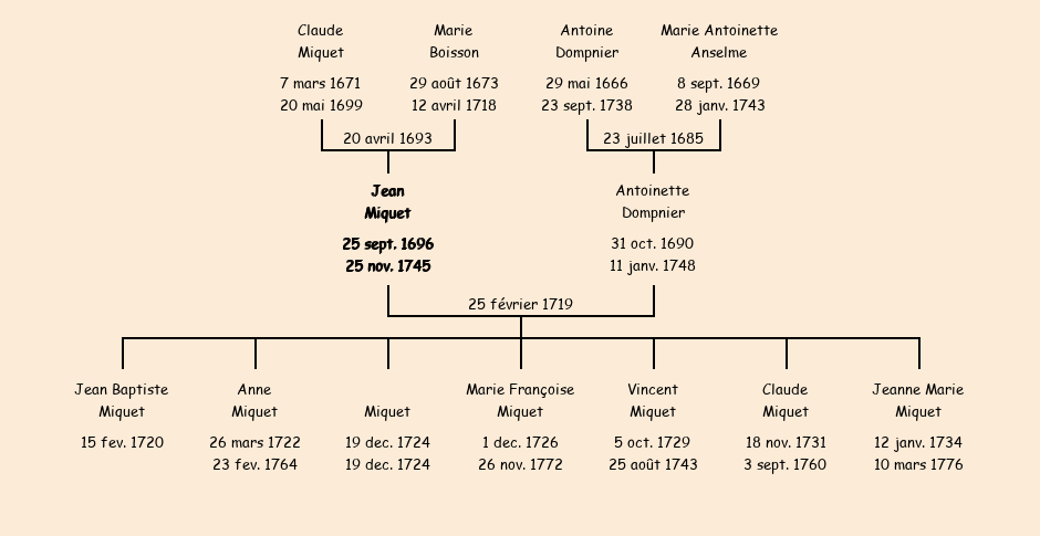 Jean Miquet apparait dans la consigne des mâles de 1713. |