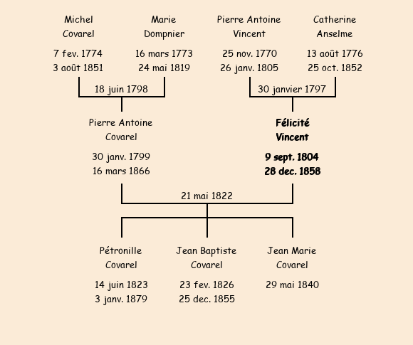 Epouse : Félicité Vincent, fille de feu Pierre Antoine et de Catherine Anselme |