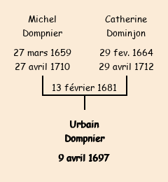 Urbain Dompnier apparait dans la consigne des mâles de 1713 (absent). |