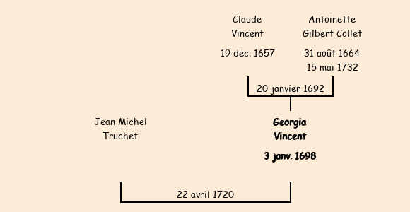 Mariée (22 ans) avec Jean Michel Truchet le 22 avril 1720 à Saint-Pancrace ![]() |