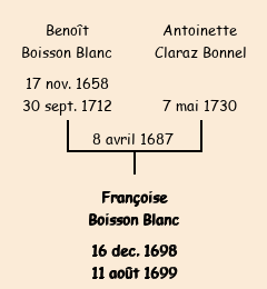 Mère : Antoinette Claraz Bonnel | Marraine : Françoise Boisson Blanc (fille de Jean décédé) |