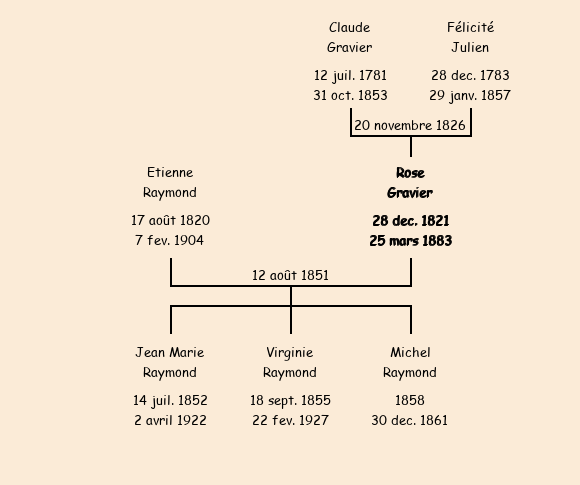 Epouse : Rose Gravier (30 ans, a marqué), fille de Claude (a marqué) et de Félicité Julien |
