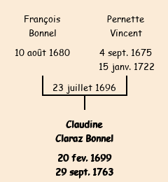 Claudine Claraz Bonnel apparait dans le recensement de la population de 1716. |
