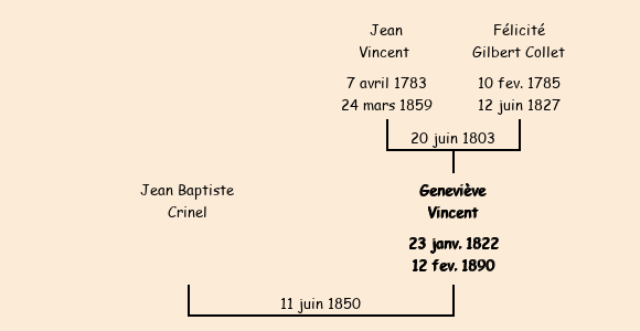 | Mariée (28 ans) avec Jean Baptiste Crinel le 11 juin 1850 à Saint-Pancrace |