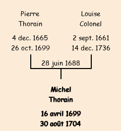 Père : Pierre Thorain | Parrain : Michel Colonel (fils de Jean Baptiste, frère de la marraine) |