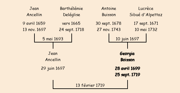 Mère : Lucrèce Sibué d'Alpettaz | Marraine : Georgia (veuve du dit Philippe) |