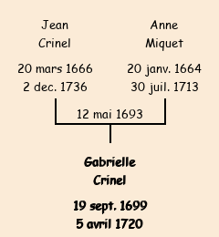 | Gabrielle Crinel apparait dans le recensement de la population de 1716. |