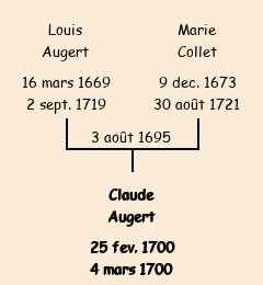 Père : Louis Augert | Parrain : Claude Gilbert Collet (fils de Jean Claude, frère de la marraine) |
