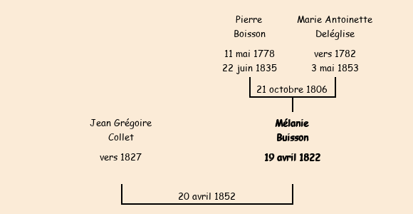 | Epouse : Mélanie Buisson (30 ans, a marqué), fille de feu Pierre et de Marie Antoinette Deléglise (a marqué) |